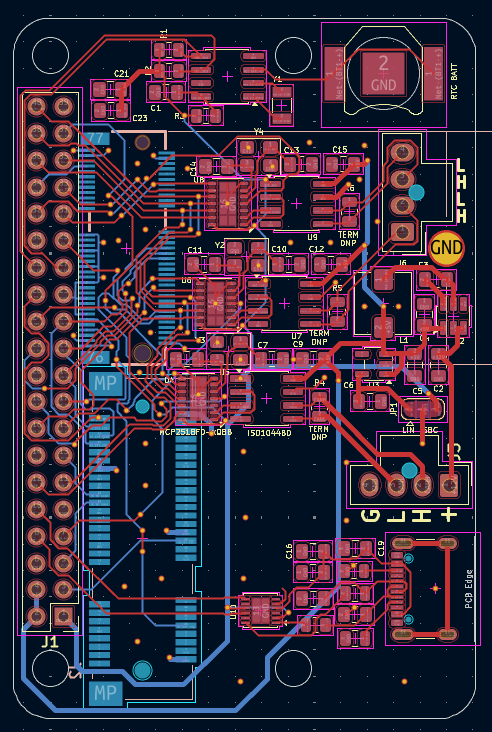 Unlike previous years, the logging telemetry board will not have a microcontroller and will instead be a “hat” which sits upon any SBC with the standard 40 pin header, which must have I2S, I2C, UART0, and SPI0,1 matching the raspberry pi spec. This decision was made because: