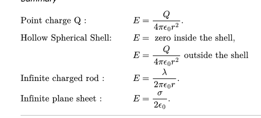 Linear Charge Density : Coulumb/meter Surface Charge Density Coulumb/meter