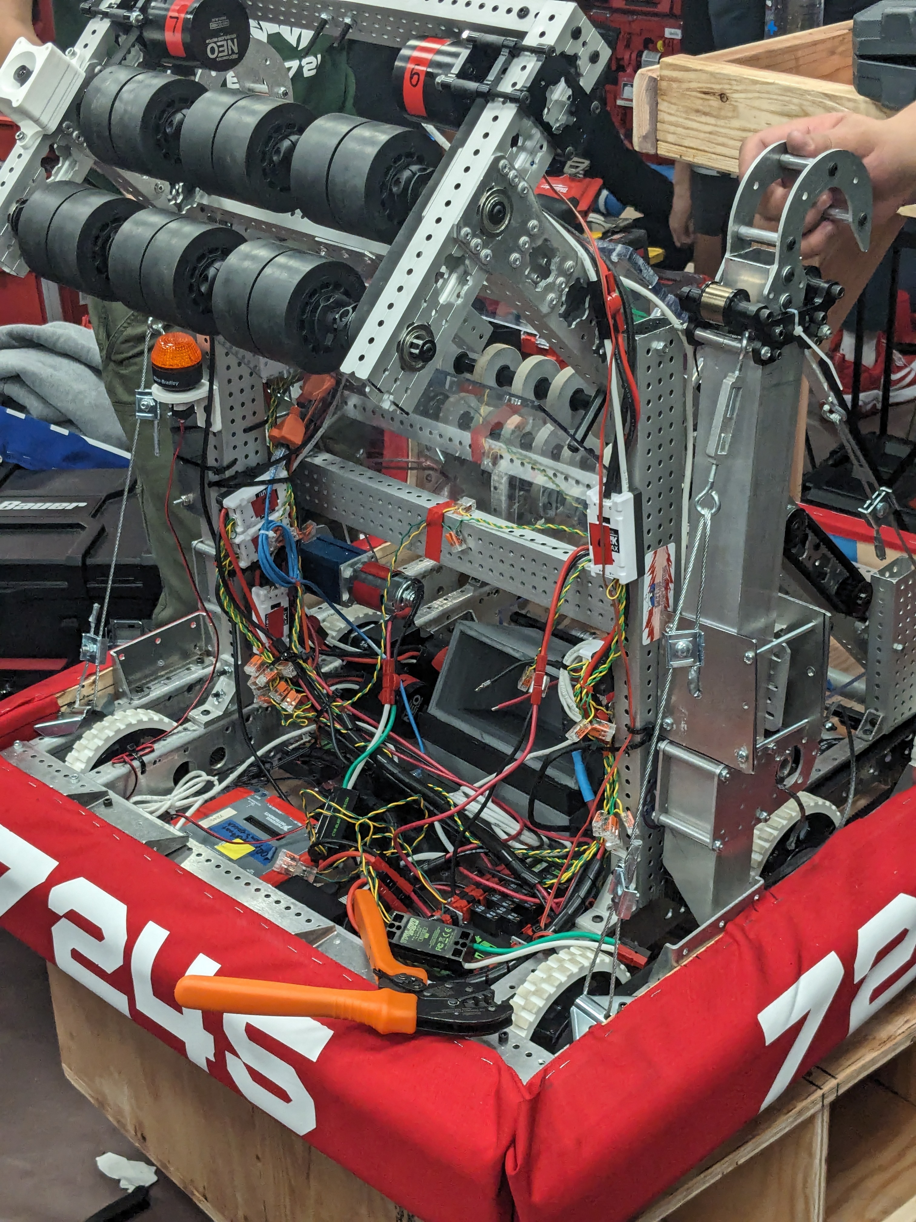 Likely to break in match as is: 25% Easy to fix rating: 7/10 - simple bot, stupid wiring Nice to work with: N/D